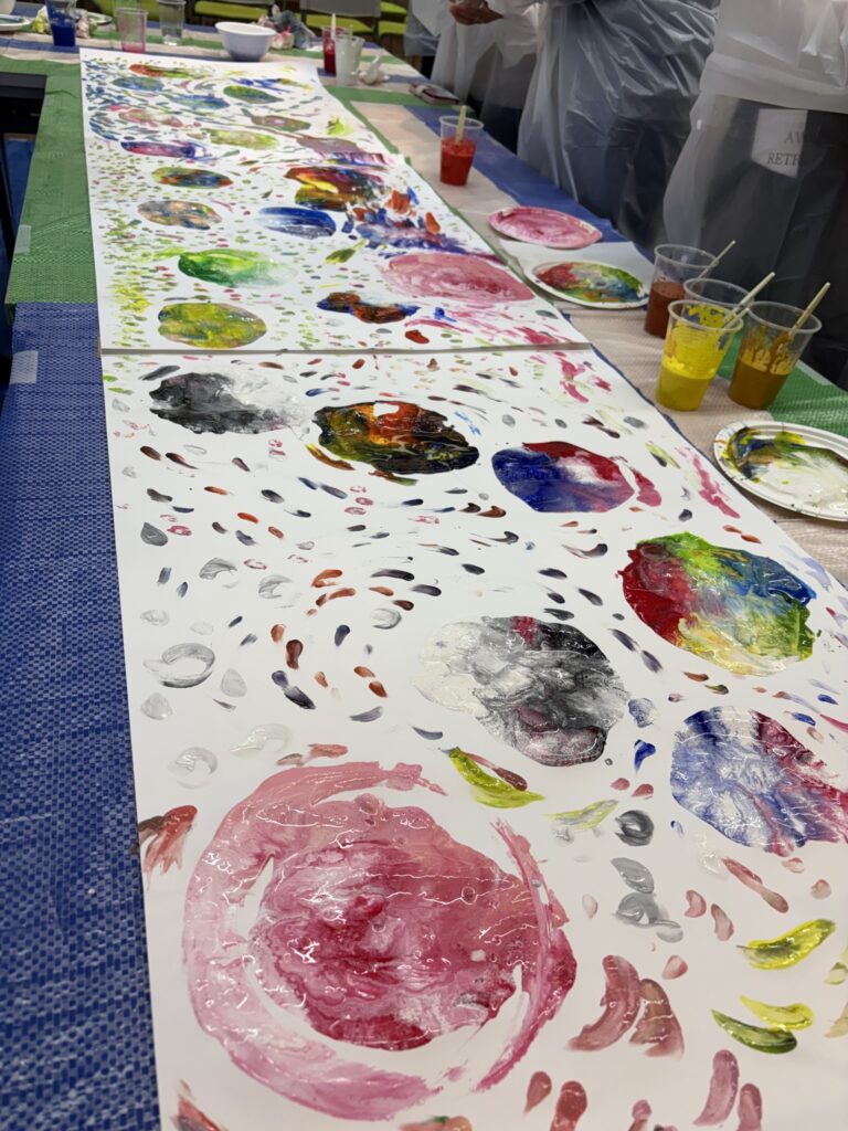 1月10日(土)に集合し、「自分とつながる時間」を過ごしたあと、いよいよフィンガーペインティングへ。